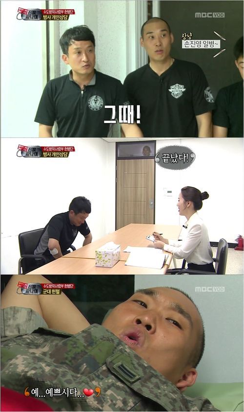 손진영은 지난 13일 방송된 MBC 예능프로그램 ‘일밤-진짜 사나이’에서 수도방위사령본부 헌병단에서 군체험을 하던 중 여성 심리상담사에게 푹 빠졌다.