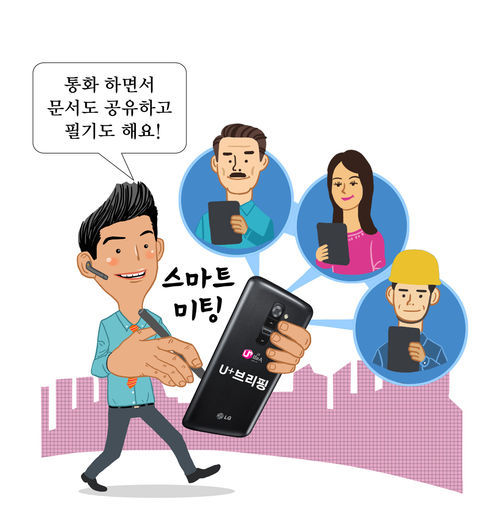 LG유플러스가 스마트폰을 통해 언제 디서나 문서를 공유할 수 있는 서비스를 내놨다. LG유플러스는 14일 통신사에 관계없이 스마트폰이나 태블릿 PC로 통화하면서 문서를 공유해서 볼 수 있는 스마트 미팅 솔루션 ‘U+브리핑’을 출시했다고 밝혔다.