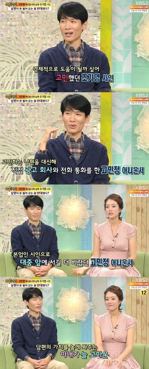 고민정 아나운서와 남편 조기영 시인은 14일 오전 방송된 KBS 2TV '여유만만'에 출연했다.