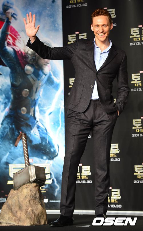 할리우드 배우 톰 히들스턴이 14일 오전 서울 여의도 콘래드호텔에서 열린 영화 '토르: 다크 월드' 내한 기자회견에 참석해 포토타임을 갖고 있다.