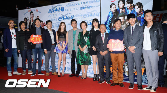 14일 오후 서울 왕십리 CGV에서 진행된 영화 '롤러코스터'(하정우 감독) VIP시사회에 참석한 영화 출연진이 포토타임을 갖고 있다.