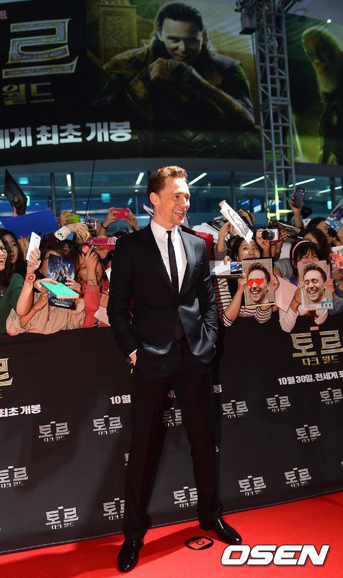 할리우드 배우 톰 히들스턴이 14일 저녁 서울 영등포 타임스퀘어에서 열린 영화 '토르: 다크 월드' 레드카펫 행사에 참석해 팬들과의 만남을 갖고 있다.