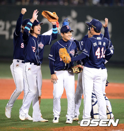 승리를 거둔 두산 선수들이 기뻐하고 있다./youngrae@osen.co.kr