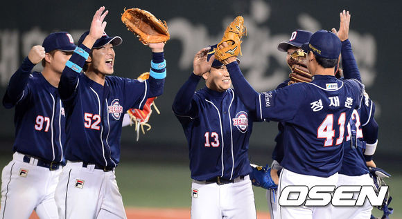 승리를 거둔 두산 선수들이 기뻐하고 있다./youngrae@osen.co.kr