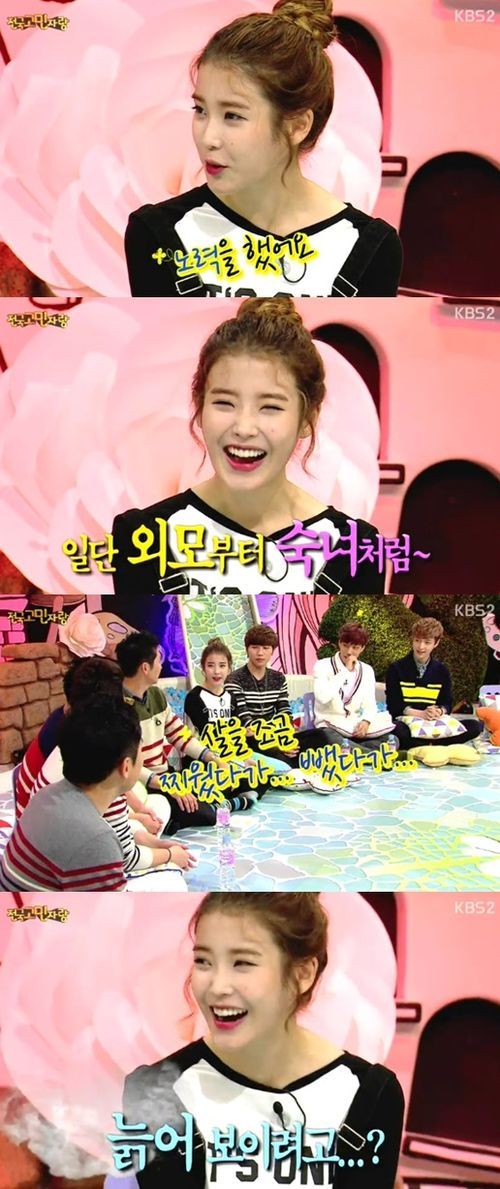 이날 아이유는 "소녀보다는 숙녀로 변신했다"라는 MC의 말에 "염색을 했다. 또 살을 조금 찌웠다가 뺐다가 했다"라고 말했다.