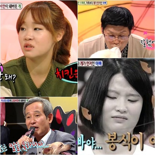 당시 딸은 가족보다 개가 먼저인 아빠 때문에 서운하다고 말했지만 개 봉식이와 봉선이를 아끼는 아빠는 "퇴근하고 집에 돌아가면 애들은 컴퓨터를 하면서 내다보지도 않는다. 하지만 개들은 내가 오면 반갑게 짖는다"라고 애완견을 더 아끼게 된 이유를 전하며 "사업에 실패하고 생의 의지가 꺾였던 적이 있었다. 그런데 그때 나를 잡아줬던 건 강아지였다"라고 뜻을 굽히지 않아 안타까움을 자아냈다.