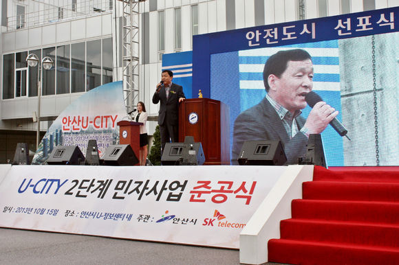 U-정보센터에서 열린 이날 준공식에는 김철민 안산시장과 전준호 안산시의회 의장, 지역주민 등 300여 명과 조승원 SK텔레콤 기업사업3본부장 등 SK텔레콤 관계자들이 참석해 준공을 축하하며 '안전도시' 선포식을 가졌다.