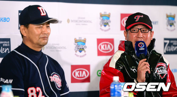 LG 김기태 감독과 봉중근은 15일 잠실구장에서 열린 플레이오프 미디어데이에서 나란히 두산의 스피드를 경계했다.