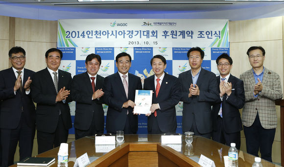 2014 인천아시안게임조직위원회(위원장 김영수)는 15일 조직위원회에서 권경상 사무총장과 오재윤 대표 등이 참석한 가운데 제주특별자치도개발공사와 서플라이어급 공식후원계약을 체결했다고 발표했다.