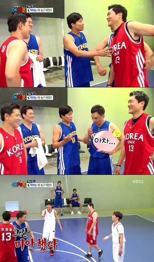이날 전설의 농구 스타 전희철, 신기성, 석주일, 김훈, 우지원이 출연 '예체능' 멤버들과 농구 시합을 진행했다. 이 과정 중 석주일이 최강창민과 몸싸움 중 손바닥으로 어깨를 내리쳤다.
