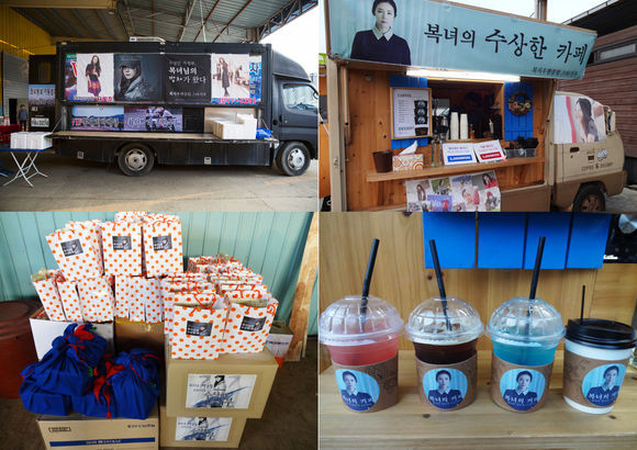 10여명의 참석 회원들은 “연일 고생이 많으신 우리의 복녀님과 스태프를 위해 작은 정성을 모았다”며 응원의 메시지를 전달했다. 또 ‘수상한 가정부 복녀님의 밥차가 왔다’, ‘복녀의 수상한 카페’, ‘복녀님의 수상한 야식’, ‘복녀의 커피’ 등으로 음식마다 재치 있는 이름을 붙이기도 했다.