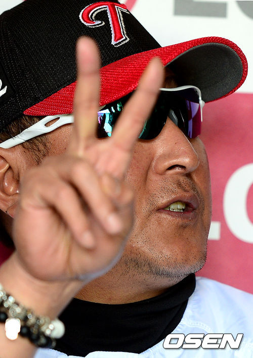 16일 오후 잠실구장에서 열리는 '2013 한국야쿠르트 세븐 프로야구' LG 트윈스와 두산 베어스의 플레이오프 1차전, 경기에 앞서 LG 김기태 감독이 취재진과 이야기를 나누고 있다.