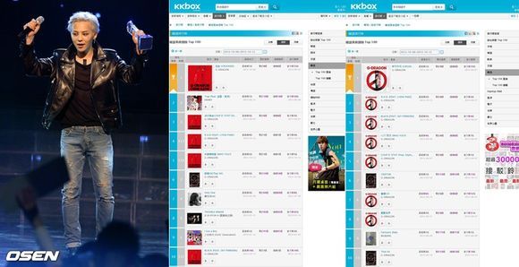 지드래곤의 정규 2집 '쿠데타(COUP D'ETAT)' 앨범이 지난 4일 발매된 이후 대만과 홍콩 최대 음악사이트 KKBOX의 음원, 음반 차트에서 1위를 차지, 다른 수록곡 역시 TOP 10에 랭크되는 진기록을 수립한 것.