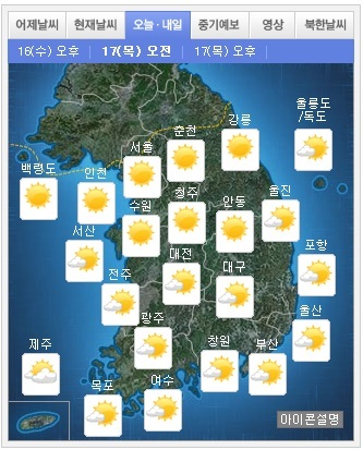 이는 상층에 머물고 있는 찬 공기로 인한 것으로 내일 아침 기온이 크게 떨어져 오늘보다 쌀쌀하며 중부와 남부 내륙에는 서리가 내리고, 얼음이 어는 곳이 있을 것으로 보인다.