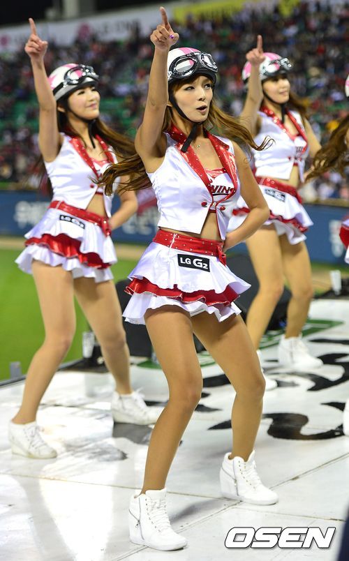 16일 오후 잠실구장에서 열린 '2013 한국야쿠르트 세븐 프로야구' LG 트윈스와 두산 베어스의 플레이오프 1차전, LG 치어리더들이 멋진 공연을 펼치고 있다.