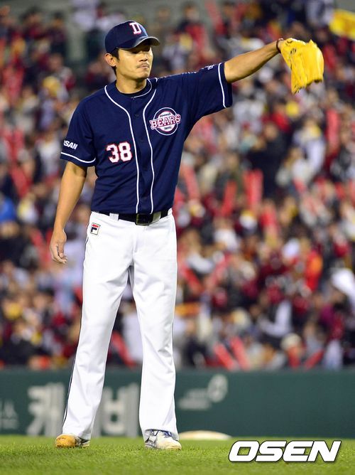 16일 오후 잠실구장에서 열린 '2013 한국야쿠르트 세븐 프로야구' LG 트윈스와 두산 베어스의 플레이오프 1차전, 3회말 노경은이 이병규를 볼넷으로 내보내고 있다.