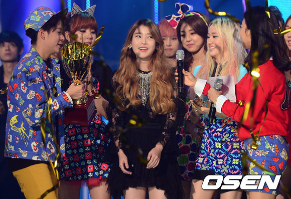 16일 오후 서울 마포구 상암동 누리꿈 스퀘어에서 진행된 MBC MUSIC '쇼 챔피언'에서 1위를 차지한 아이유가 미소를 짓고 있다.