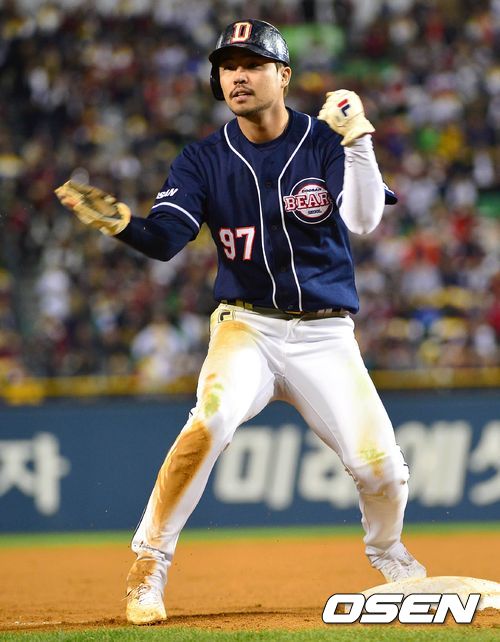 16일 오후 잠실구장에서 열린 '2013 한국야쿠르트 세븐 프로야구' LG 트윈스와 두산 베어스의 플레이오프 1차전, 6회초 1사 1루 류제국의 폭투를 틈타 오재원이 3루까지 달려 세이프 되고 있다.
