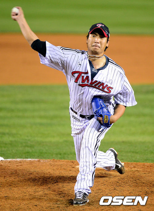16일 오후 잠실구장에서 열린 '2013 한국야쿠르트 세븐 프로야구' LG 트윈스와 두산 베어스의 플레이오프 1차전, 6회초 1사 1루에서 LG 이동현이 역투하고 있다.