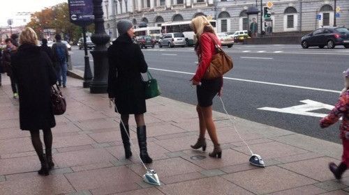 사진이 촬영된 곳을 러시아의 한 거리인 것으로 알려졌으나 두 여성이 다리미를 산책시키고 있는 이유에 대해서는 알려진 바가 없다.