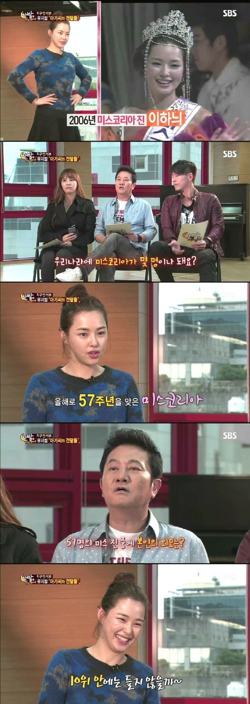 이에 배우 박준규가 짓궂은 질문을 던졌다. 미스코리아가 올해로 57주년을 맞았는데, 57명의 미스 진 중에 본인의 외모가 몇 등이나 할 거 같냐는 것.