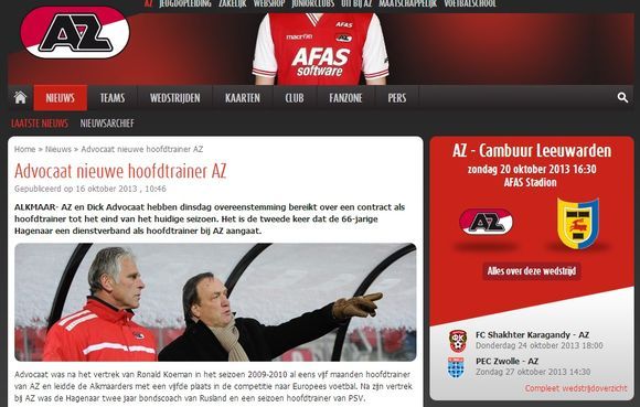 AZ 알크마르는 지난 16일(이하 한국시간) 공식 홈페이지를 통해 아드보카트 감독의 선임을 알렸다. 2009-2010시즌 벨기에 국가대표팀 감독과 AZ 알크마르 감독을 겸임한 아드보카트 감독은 2010년부터 2012년까지 러시아 국가대표팀을 이끌었고, 이후 2012-2013시즌 네덜란드로 복귀해 한 시즌 동안 아인트호벤을 이끈 후 은퇴를 선언했다.