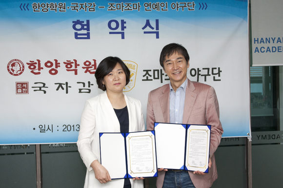 이날 협약식에는 ‘조마조마’ 연예인 야구단 단장인 배우 정보석 씨를 비롯해 만화가 박광수, 개그맨 심현섭, 가수 노현태, 한양학원 이효재 대표원장, 신도림점 현승희 원장, 청운학원 부평•주안점 진주 원장, 청운학원 부천점 임수정 원장, 수능과 이석우 부장, 신승모 부부장, 국자감의 신은경, 윤미연 과장 등이 참석했다.