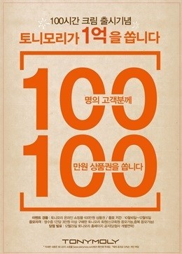[OSEN=이슈팀] 토니모리는 ‘100시간 크림’ 출시를 기념해 무려 100명의 고객에게 총 100만원의 토니모리 온라인 쇼핑몰 상품권을 증정하는 ‘100.100.100’ 이벤트를 진행한다고 16일 밝혔다.