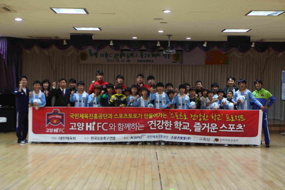 고양은 지난 15일 경기도 포천시 소흘읍에 위치한 태봉초등학교를 찾아 축구클리닉은 물론, 체육 물품을 전달하는 등 청소년들에게 꿈과 희망을 전달했다.