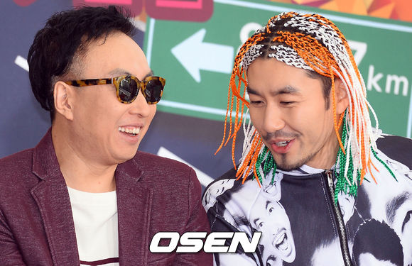 17일 오전 경기도 일산 MBC 드림센터에서 '무한도전 자유로 가요제' 기자간담회에서 박명수와 노홍철이 이야기를 나누고 있다.