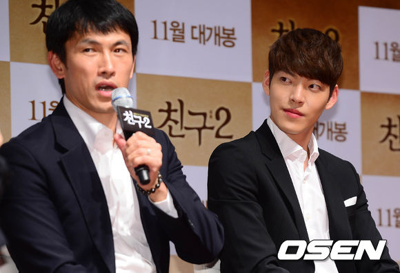 17일 오전 서울 자양동 롯데시네마 건대입구에서 열린 영화 '친구2' 제작보고회에 김우빈과 유오성이 참석하고 있다.