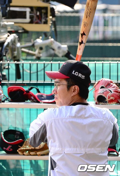 17일 오후 잠실구장에서 열린 '2013 한국야쿠르트 세븐 프로야구' LG 트윈스와 두산 베어스의 플레이오프 2차전, 경기에 앞서 LG 정성훈이 덕아웃에서 배트를 휘두르고 있다.