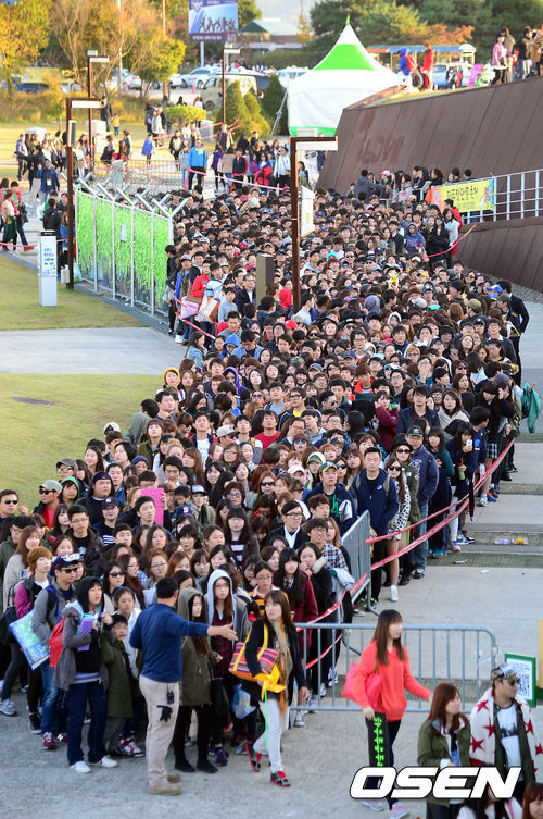 공원의 외곽으로는 공연장에 들어가기 위해 줄을 서고 있는 사람들의 긴 줄이 끝도 없이 이어진 상황. 현장 관계자의 말에 의하면 줄은 이미 어제(16일) 늦은 저녁부터 시작됐다. 현재 사람들은 시간대 별로 자리를 잡고 앉아 긴 줄을 이루고 있다. 긴 줄 서기를 포기하고 주변 잔디밭 등지에 앉아 이를 구경하는 사람들은 간간히 무대 주변에서 새어 나오는 리허설 소리를 들으며 '무한도전' 멤버들과 파트너들이 선보일 신곡에 대해 들뜬 기대감을 드러내고 있다.