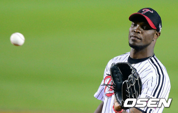 17일 오후 잠실구장에서 열린 '2013 한국야쿠르트 세븐 프로야구' LG 트윈스와 두산 베어스의 플레이오프 2차전, 1회초 LG 리즈가 두산 정수빈을 삼진으로 처리하고 있다.