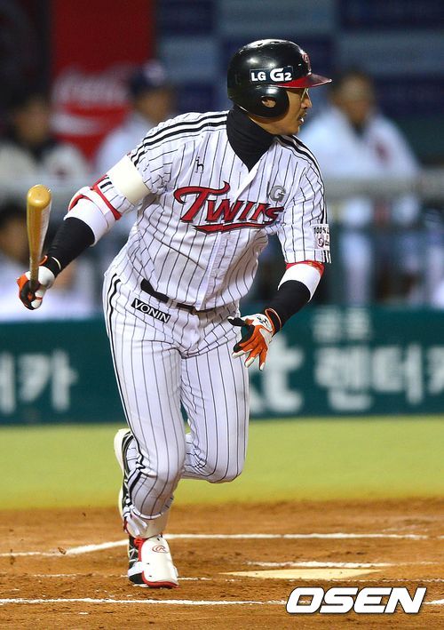 17일 오후 잠실구장에서 열린 '2013 한국야쿠르트 세븐 프로야구' LG 트윈스와 두산 베어스의 플레이오프 2차전, 1회말 LG 공격 선두타자로 나선 1번 박용택이 좌전안타를 날리고 있다.