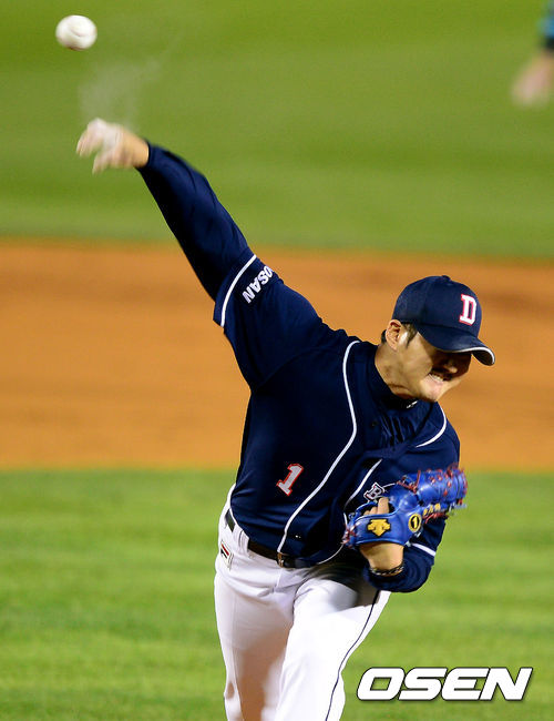 17일 오후 잠실구장에서 열린 '2013 한국야쿠르트 세븐 프로야구' LG 트윈스와 두산 베어스의 플레이오프 2차전, 1회말 두산 이재우가 역투하고 있다.