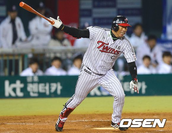 17일 오후 잠실구장에서 열린 '2013 한국야쿠르트 세븐 프로야구' LG 트윈스와 두산 베어스의 플레이오프 2차전, 3회말 LG공격 2사 주자없는 상황 5번 이병규가 우전안타를 날리고 있다.