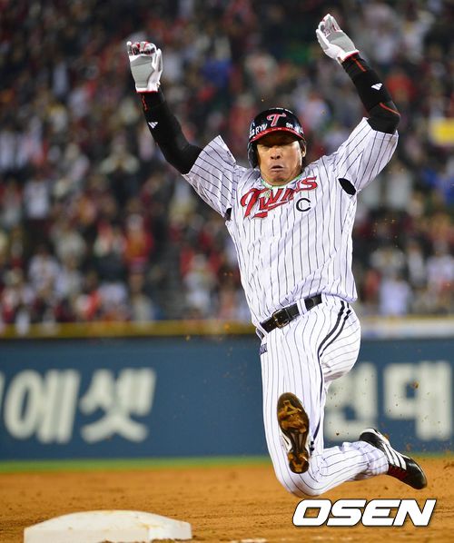 17일 오후 잠실구장에서 열린 '2013 한국야쿠르트 세븐 프로야구' LG 트윈스와 두산 베어스의 플레이오프 2차전, 3회말 2사 1루 작은 이병규의 안타때 1루주자 큰 이병규가 3루까지 달려 세이프 되고 있다.