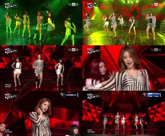 지연은 17일 오후 방송된 엠넷 '엠카운트다운'에서 무릎 보호대를 한 채 '넘버나인'을 소화하는 부상 투혼을 선보였다.