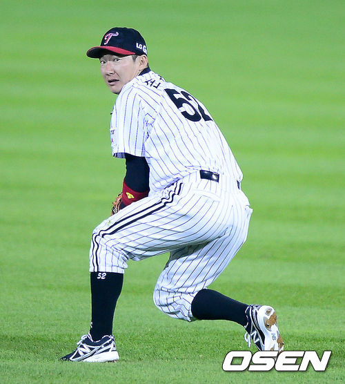 17일 오후 잠실구장에서 열린 '2013 한국야쿠르트 세븐 프로야구' LG 트윈스와 두산 베어스의 플레이오프 2차전, 4회초 2사에서 LG 손주인이 두산 최준석의 2루땅볼 타구를 처리하고 있다.
