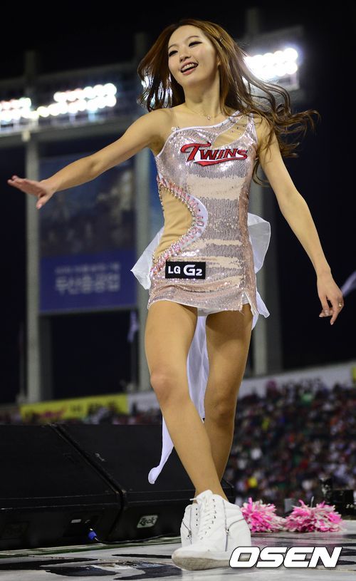 17일 오후 잠실구장에서 열린 '2013 한국야쿠르트 세븐 프로야구' LG 트윈스와 두산 베어스의 플레이오프 2차전, LG 치어리더가 멋진 공연을 펼치고 있다.