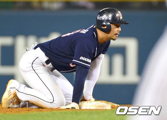 17일 오후 잠실구장에서 열린 '2013 한국야쿠르트 세븐 프로야구' LG 트윈스와 두산 베어스의 플레이오프 2차전, 5회초 1사 1,2루 양의지의 내야땅볼때 2루에서 포스아웃된 오재원이 아쉬워 하고 있다.