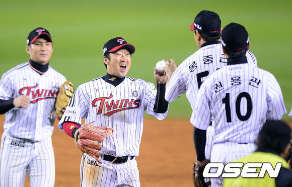 경기후 LG 선수들이 승리를 기뻐하고 있다./jpnews@osen.co.kr