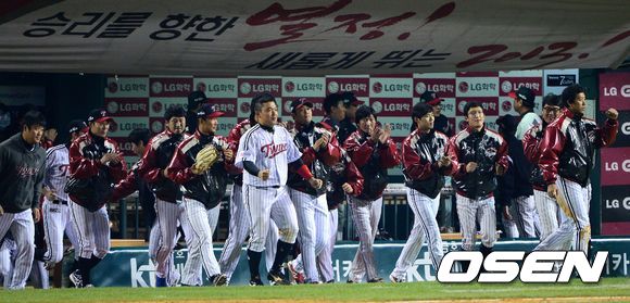 경기 종료 후 LG 선수들이 승리의 기쁨을 나누고 있다./sunday@osen.co.kr