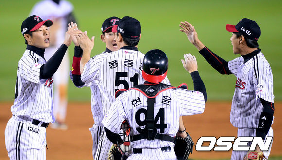 경기후 LG 선수들이 승리를 기뻐하고 있다./jpnews@osen.co.kr