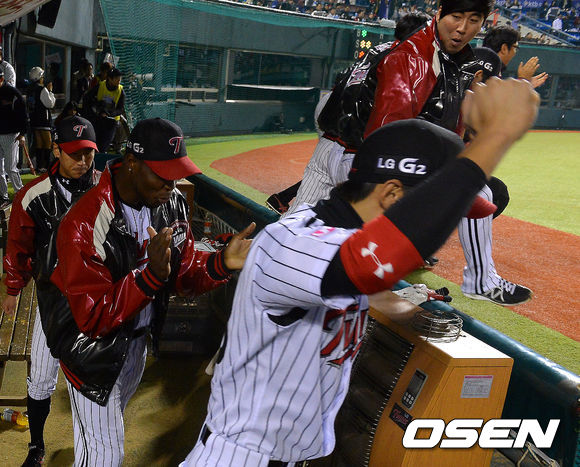 LG 리즈를 비롯한 선수들이 승리가 확정되자 기뻐하고 있다./jpnews@osen.co.kr