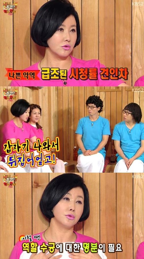 이날 유혜리는 "타탕한 악역이 아니라 시청률을 위해 급조된, 밑도 끝도 없는 악역을 받아봤다. 출연료가 높다던지 하는 명분이 필요했다"라고 말해 웃음을 자아냈다.