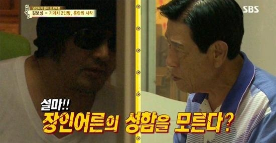 이날 ‘기계치‘인 김보성은 장인의 MP3에 있는 음악을 휴대전화로 옮기기 위해 진땀을 뺐다. 휴대전화에 노래를 다운 받기 위해 회원가입이 필요하다는 사실을 알게 된 김보성은 장인에게 “성함이 어떻게 되시죠?”라고 물었다. “내 이름을 모르나”라고 되묻는 장인의 당황한 표정이 이날의 압권.