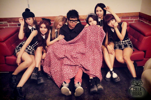 신인 걸그룹 피에스타와 히트메이커 신사동 호랭이가 호피무늬 담요 퍼포먼스를 선보였다.