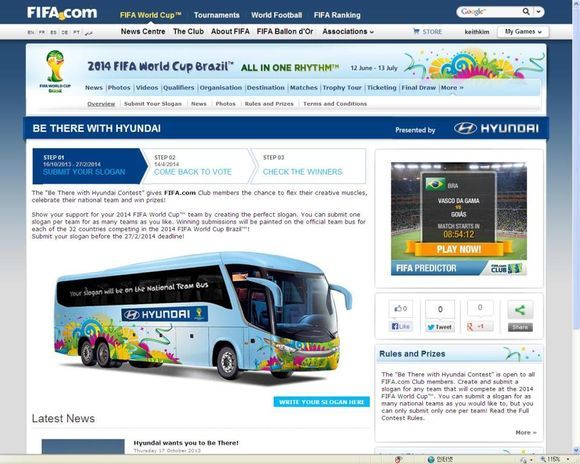 현대자동차가 FIFA 공식 사이트를 통해 '2014 브라질 월드컵 승리 기원 표어 공모전' 모집을 시작한다.